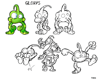 The television viewers can “see” the Glorps, but the Land of I dwellers only catch fragments of them as they jump in and out of the screen, causing problems for Jotasha and Cyclic. The Duranium Crystals are necessary to power Jotasha’s spacecraft and the Glorps manage to keep the energy crystals well hidden. They make “glorp-glorp” slurping sounds and are very sticky.
