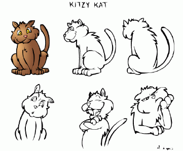 Kitzy Kat is a homeless, skittish, feisty, mangy, non-trusting, food-gulping, independent, egocentric, loud-mouthed cat. Jotasha adopts Kitzy Kat from outside the fringes of the forest community. He is a scared, insecure cat who wants to be loved, but is low on social skills and doesn’t know how to show or ask for attention and affection. Therefore he constantly gets on the regular forest dwellers’ nerves, and Grampa C has to try and soothe over the many ruffled feelings of the little characters. Kitzy is especially jealous of Cyclic and does everything in his power to mess with his computer mechanisms. Jotasha loves Kitzy and is seemingly oblivious to his bad behavior problems.